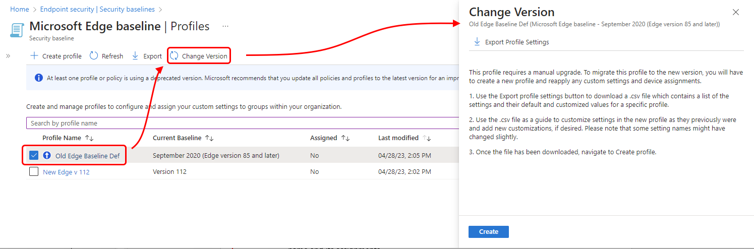 When a security baseline update is released, it becomes visible in Intune. At that point, you can review the setting and upgrade it to the new version to ensure your devices remain compliant with the newest settings.