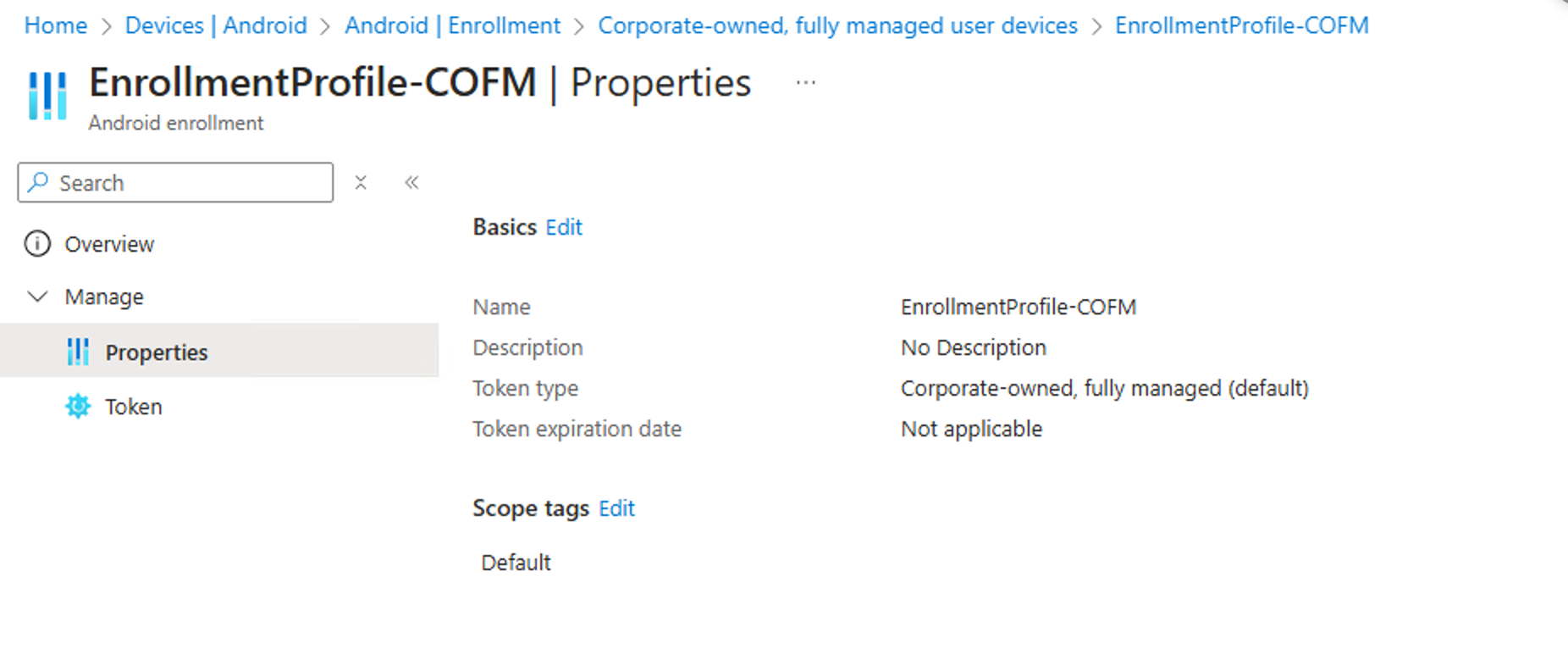 Creating the enrollment profile and generating the token is pretty straight forward. For that head to the following and create the token: