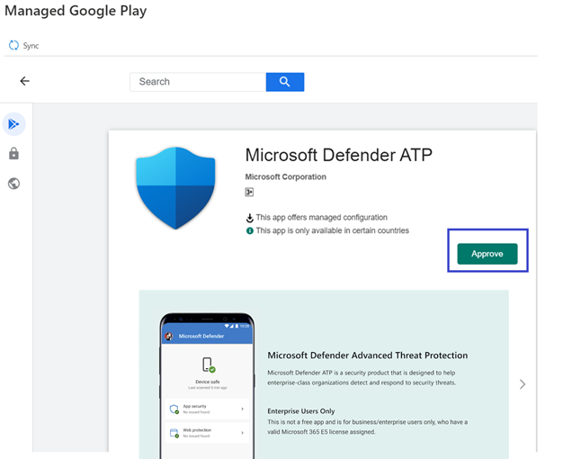 Follow the steps below to add Microsoft Defender for Endpoint app into your managed Google Play Store.