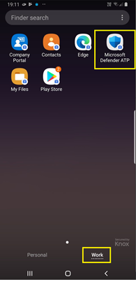 - On the device, you can validate the onboarding status by going to the work profile. Confirm that Defender for Endpoint is available, and that you're enrolled using the Personally owned devices with work profile. If you're enrolled using a Corporate-owned, fully managed user device, you have a single profile on the device where you can confirm that Defender for Endpoint is available.