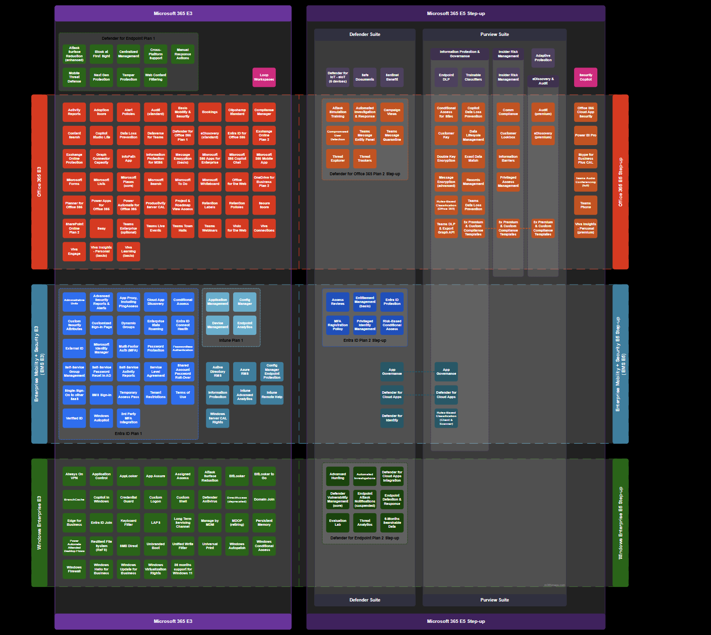 There are other limitations as well: the 300-seat cap, for instance. This can be an issue for healthcare customers with fewer than 300 seats who still require security baselines for Office apps based on frameworks like CIS. In those cases, we typically go with M365 E5 rather than E3 because, as mentioned, some key features are missing in E3 which you have to licence separately.