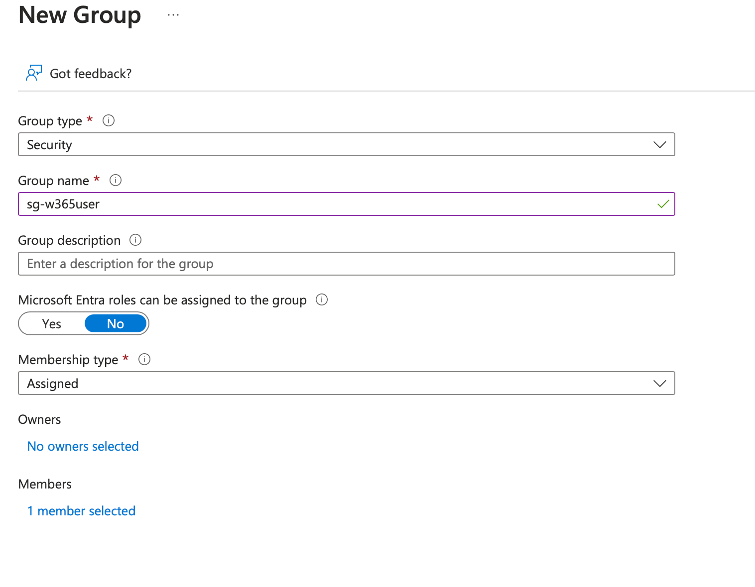 - Assignments Assign the group we created while we waited for the ANC checks to complete - in my case that's sg-w365user