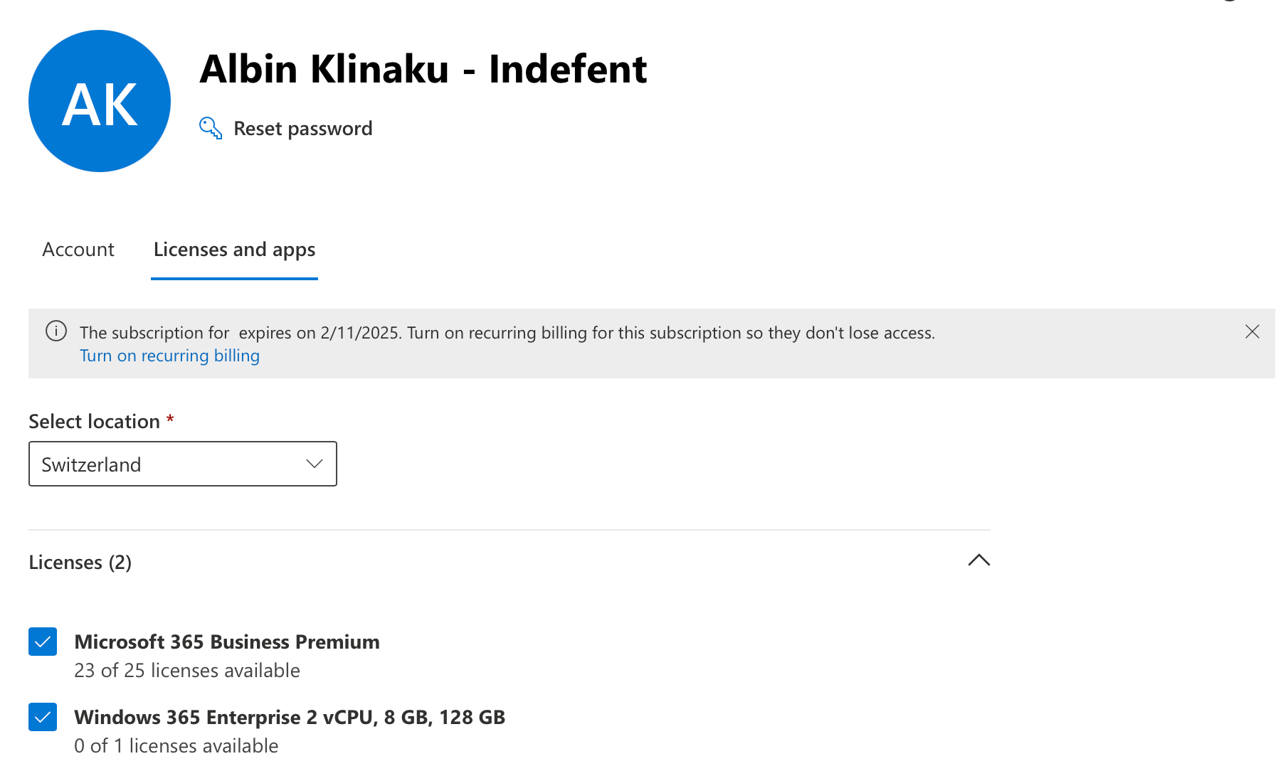 Don't forget, as we need to use Intune with Windows 365, that the users have the appropriate Intune License as well, in my case Business Premium.