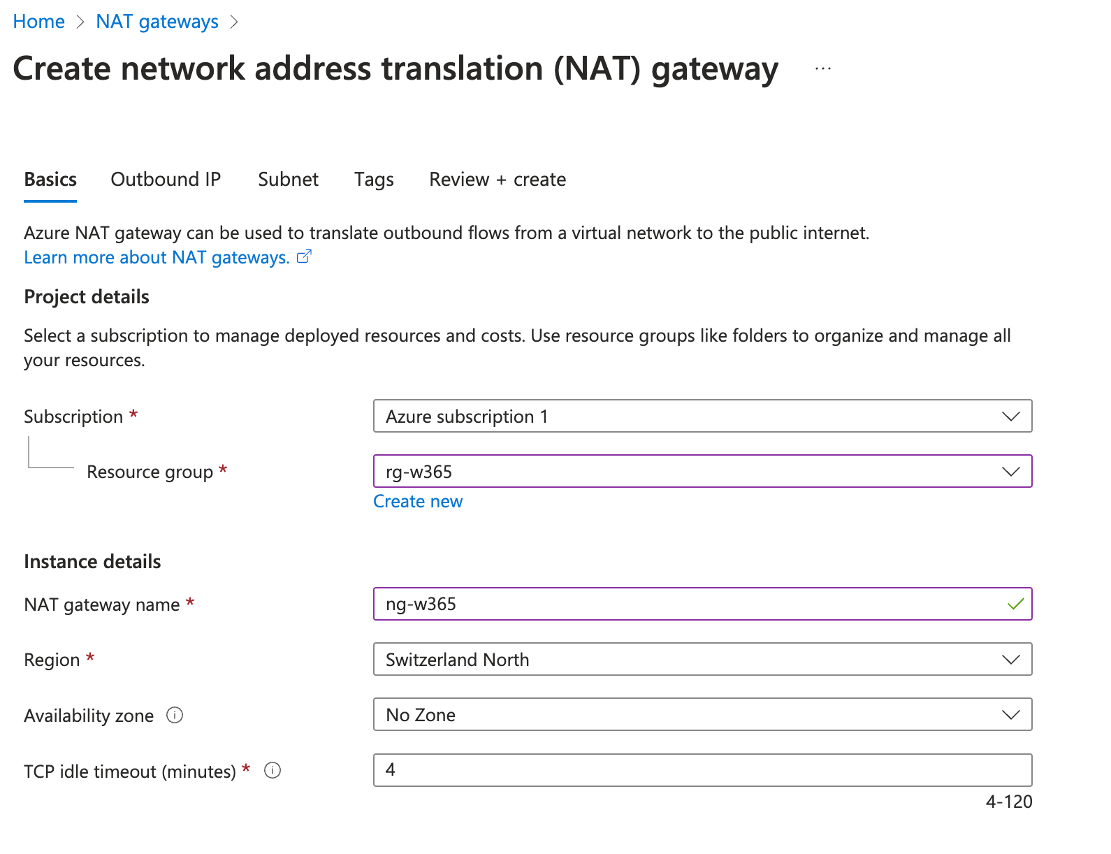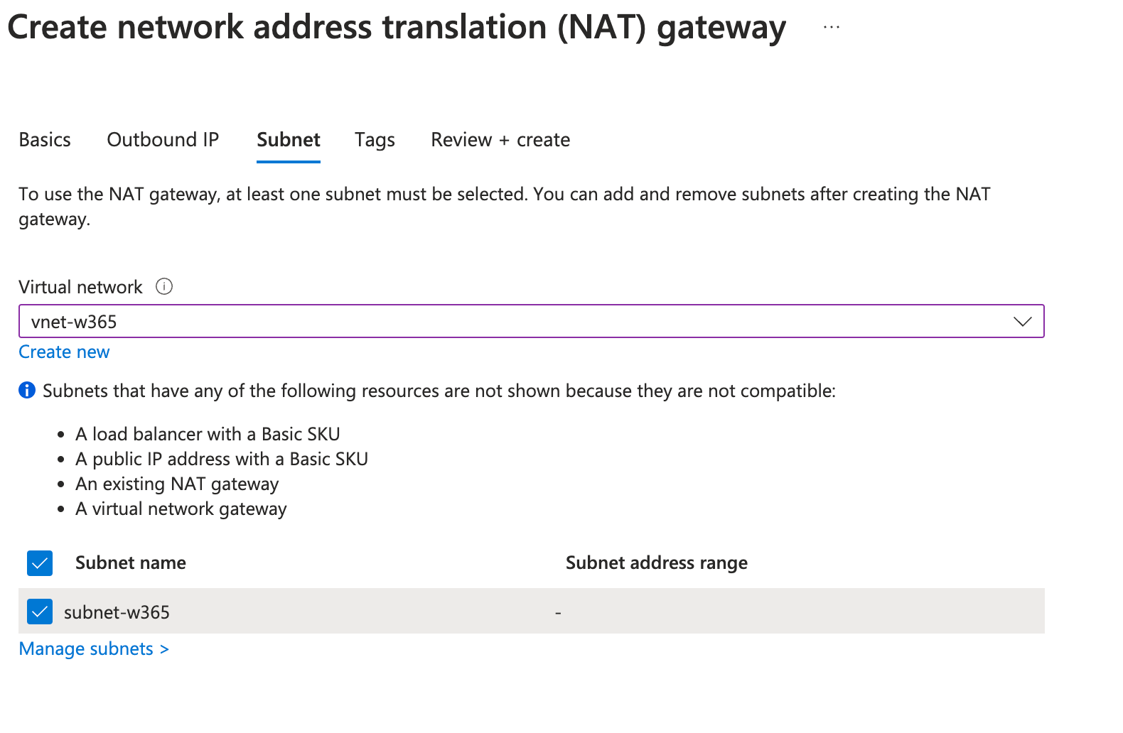 - Exclude, Selected networks and locations, Azure NAT Gateway PIP, ng-w365