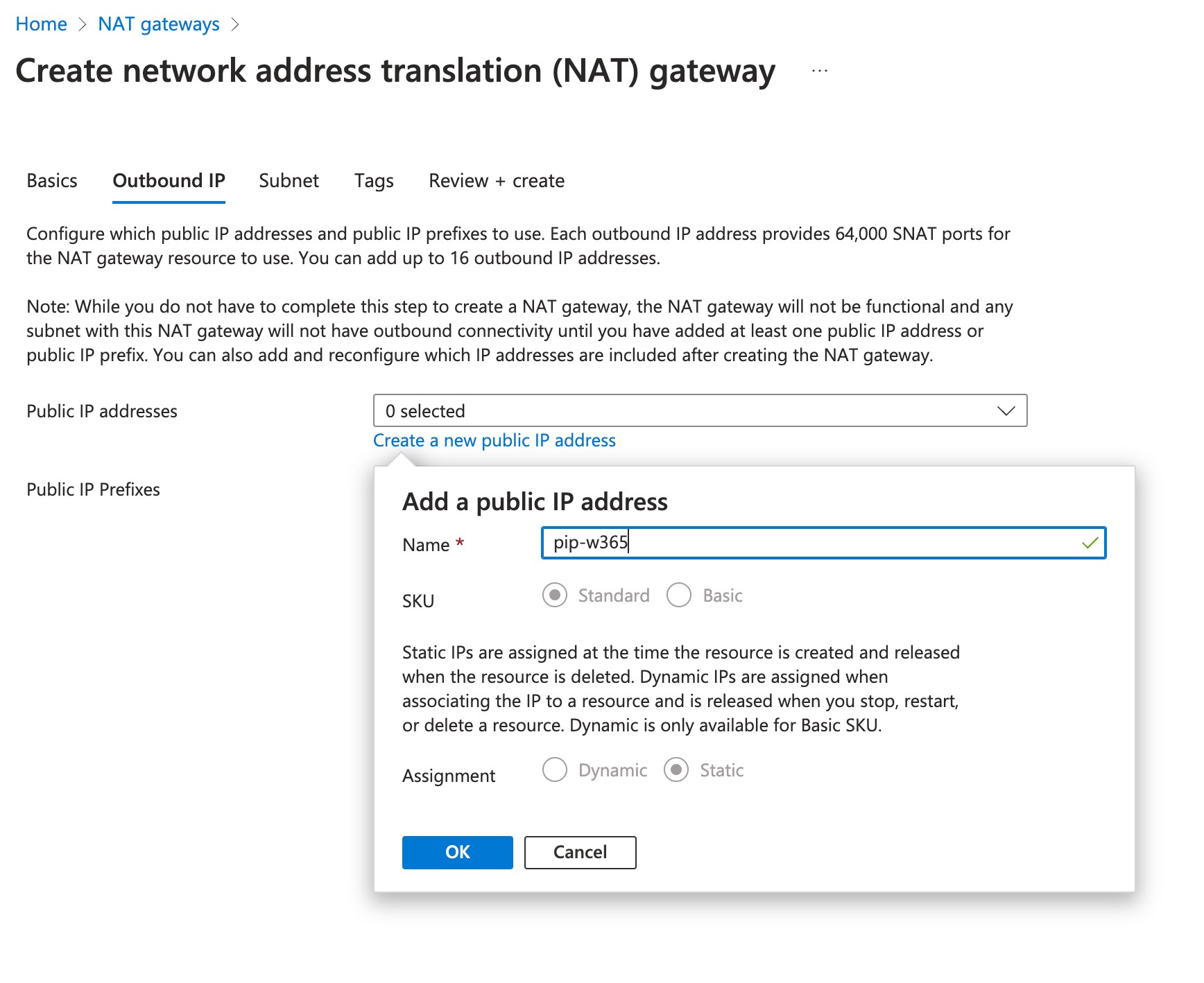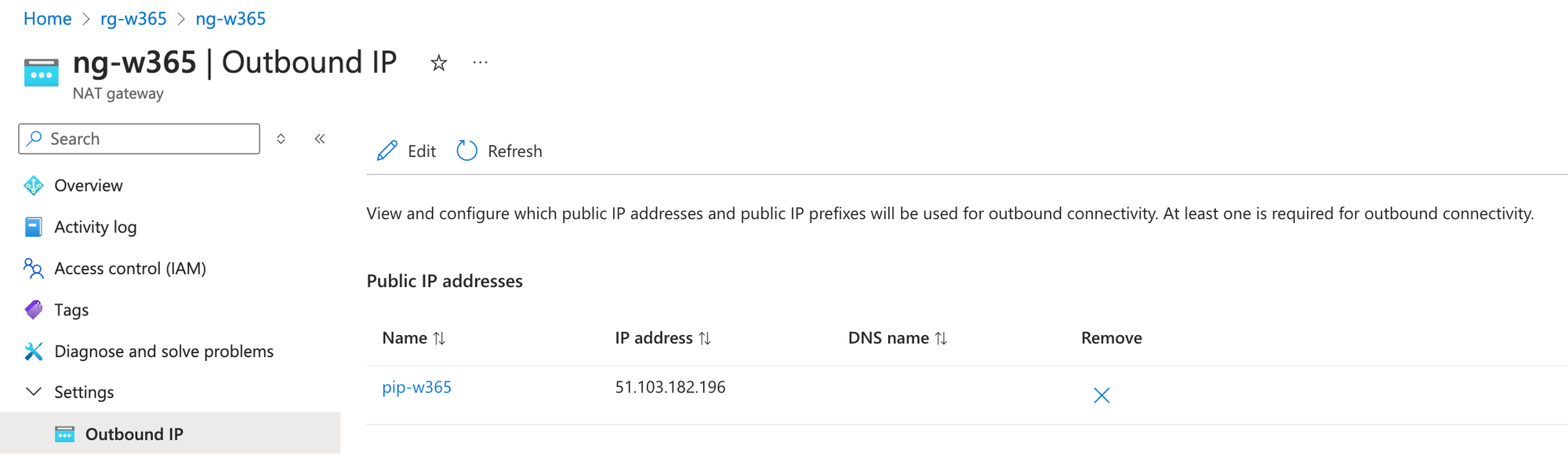 So now we see the magic, the public IP changed to the IP we received of the resource pip-w365. Now every Cloud PC which is deployed for Users in the selected group sg-w365user through the created Provisioning Policy ProvisioningPolicy-w365 are put in the same subnet and communicate over the public IP we defined in the NAT gateway.